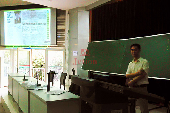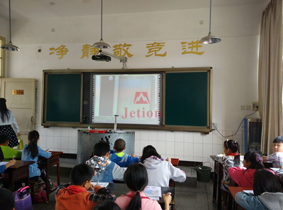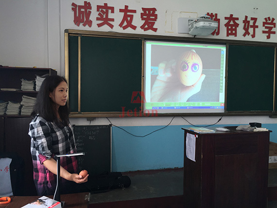 課堂上的很多操作,學生們再也不用走到黑板前,把展臺移動到學生座位上就可以直接進行展示,全班同學通過大屏幕可以清晰看到整個過程。老師說許多以往因為害羞不敢上臺的同學都開始積極要求課堂上展示,大家的精力和注意力完全聚焦于展臺的操作上,課堂上師生的互動性、學生參與的積極性都得到了極大的提升。