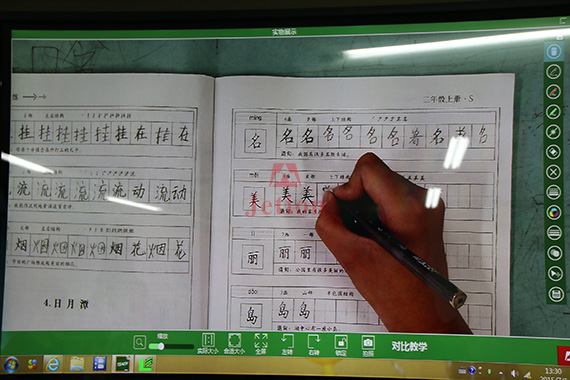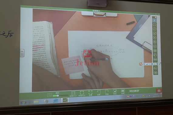下面是沈陽大東三校的語文課上,馬老師用吉星展臺展示一位學生寫作業的過程,同學們通過大屏幕觀看。老師進行詳細的講解,讓同學們能夠清晰的了解到書寫的要點和文字的詳細構造。