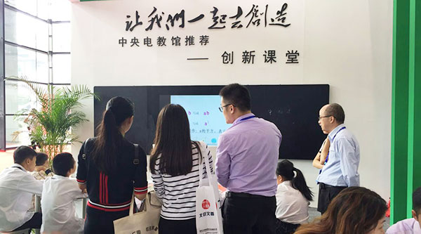 聚集教學(xué)中的“微課錄制、互動課堂、老師備課、微課平臺”四大功能于一身,引起觀展人員極大的興趣。