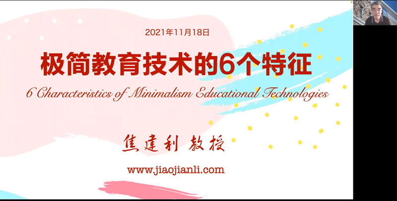 隨后,華南師范大學教育信息技術學院教授、未來教育研究中心主任焦建利帶來了課題分享心得《極簡教育技術的 6 個特征》。焦教授的分享讓參會人員對技術怎么運用到教學上有了更深入的了解。