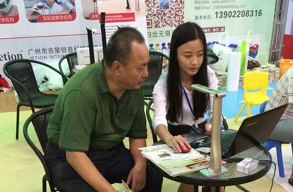 在此次展會(huì)中,吉星科技很榮幸受邀參與2015年海南教育裝備發(fā)展論壇的演講。我們?cè)诒姸嘟逃绲念I(lǐng)導(dǎo)面前詳細(xì)介紹了吉星科技全國(guó)首創(chuàng)的專利產(chǎn)品--無(wú)線視頻展臺(tái),在論壇結(jié)束后,三亞教育局,海南省電教館,以及海口市金盤實(shí)驗(yàn)學(xué)校校長(zhǎng)都對(duì)吉星無(wú)線視頻展臺(tái)表示了認(rèn)可。