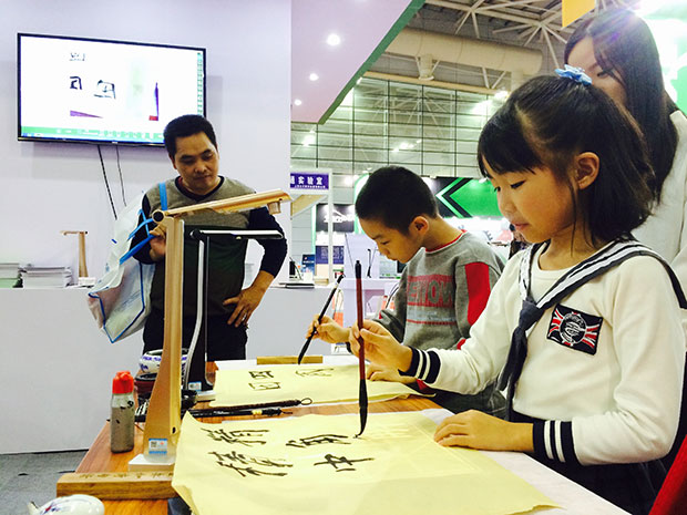 吉星互動(dòng)書法課堂吸引眾多小朋友前來體驗(yàn)