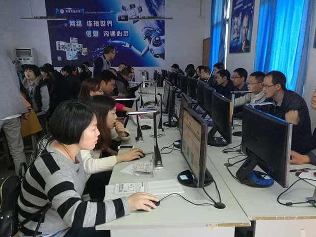 會(huì)議在四川省蒼溪實(shí)驗(yàn)中學(xué)舉辦,蒼溪縣電教站正副站長(zhǎng),蒼溪縣教育局黨委委員張主任參與會(huì)議,并發(fā)表關(guān)于教育信息化工作的重要指示。全縣150多名骨干老師參加了第一批培訓(xùn)。培訓(xùn)會(huì)上,技術(shù)培訓(xùn)講師從微課的意義和背景入手,對(duì)“微課”進(jìn)行了講解,幫助教師了解運(yùn)用“微課”的教學(xué)模式,用吉星無(wú)線錄制設(shè)備演示怎樣制作微課,就如何拍攝、如何制作、如何上傳到微課云平臺(tái)、如何組織學(xué)生觀看等問(wèn)題向老師進(jìn)行了詳細(xì)講解。老師們認(rèn)真傾聽(tīng),渴望了解最新的教育信息化手段。培訓(xùn)完后老師們分兩個(gè)微機(jī)室進(jìn)行實(shí)踐操作,并不時(shí)交流討論使用問(wèn)題和心得,確保每一位老師都能掌握無(wú)線微課制作設(shè)備使用的精髓。