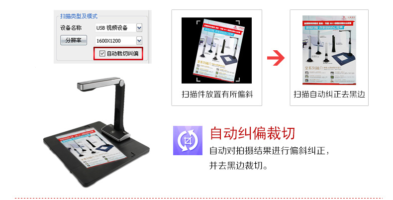 支持OCR識別,對掃描件實現智能定位;支持自動剪裁,自動糾偏;