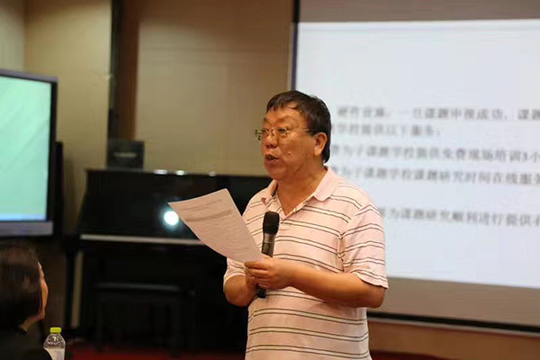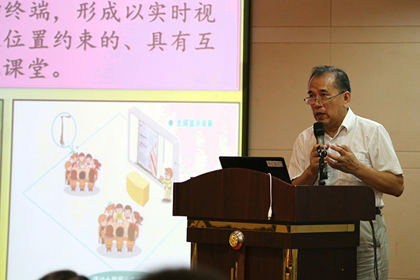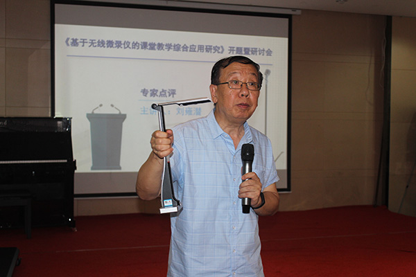 中國教育技術協會學術委員會副主任/北京電教館原館長--潘克明為《基于無線微錄儀的課堂綜合創新應用研究》做開題報告。